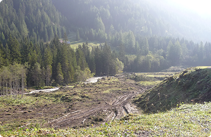Aufforsten und Nachbessern, Kulturschutz vor Wildverbiss und Rüsselkäfer, anlegen von Prügelfallen, auslegen von Fangbäumen, händische Endrindung